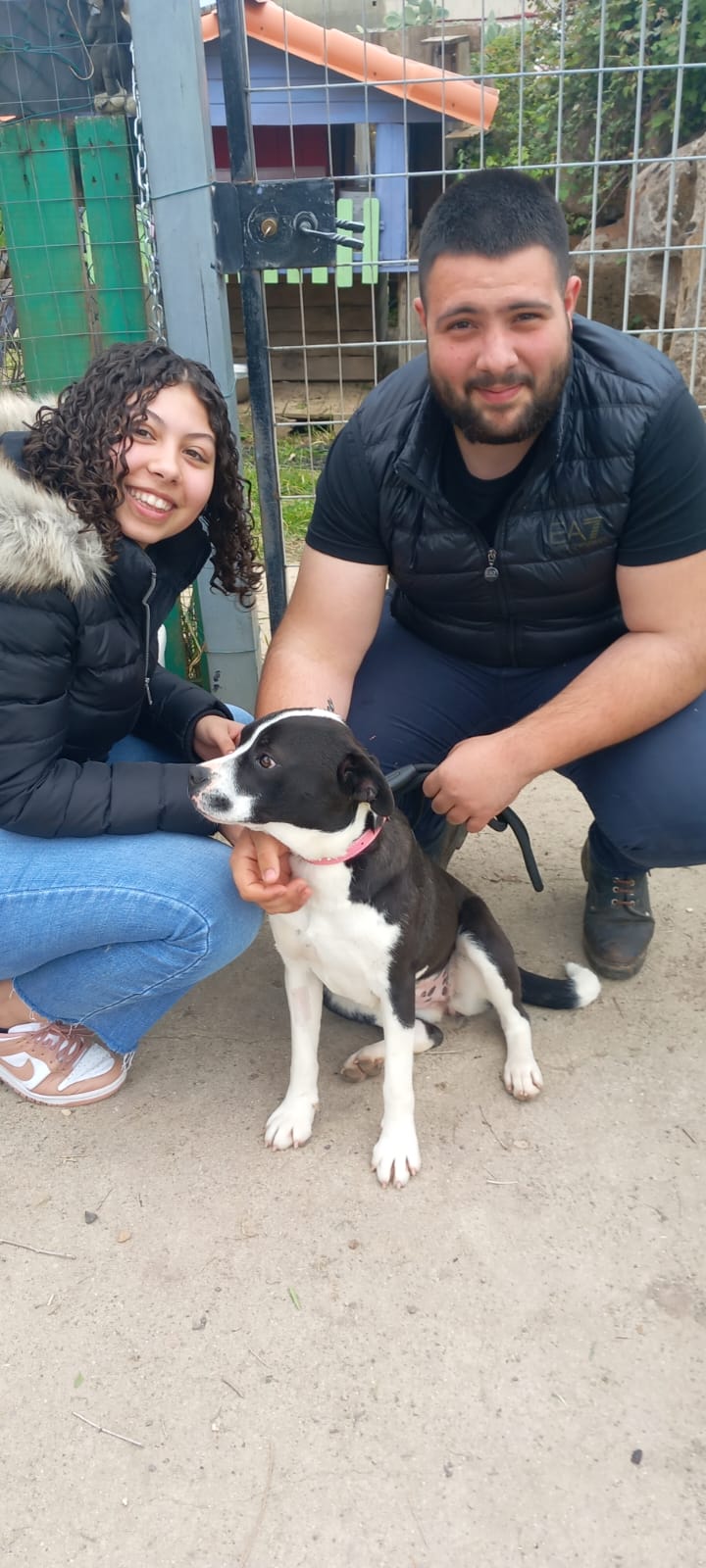 Incrocio Pitbull, giovane, poco più di un anno, tg media ed è assolutamente mansueta nonostante certi cani vengano etichettati come *pericolosi”.