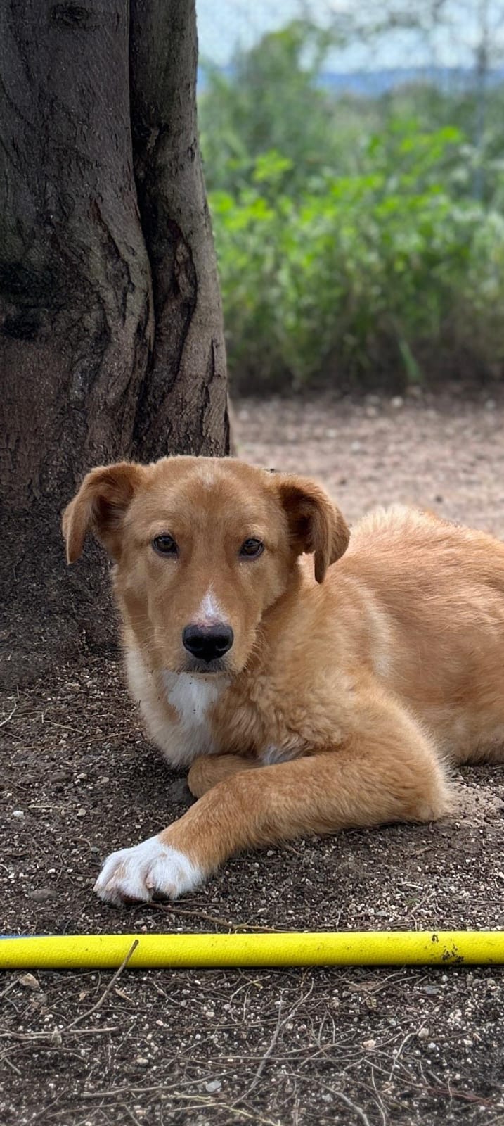 Ornella è una cucciolona di 8 mesi, tg media, nata presumibilmente nel mese di settembre 2024. È stata ritrovata insieme alla sua sorellina in un terreno di campagna, entrambe con un enorme cinghia intorno al collo, collegata da una corda alla zampa anteriore. Questa è una triste procedura barbara che alcuni contadini usano per evitare che il cane si allontani dal gregge che hanno in custodia.