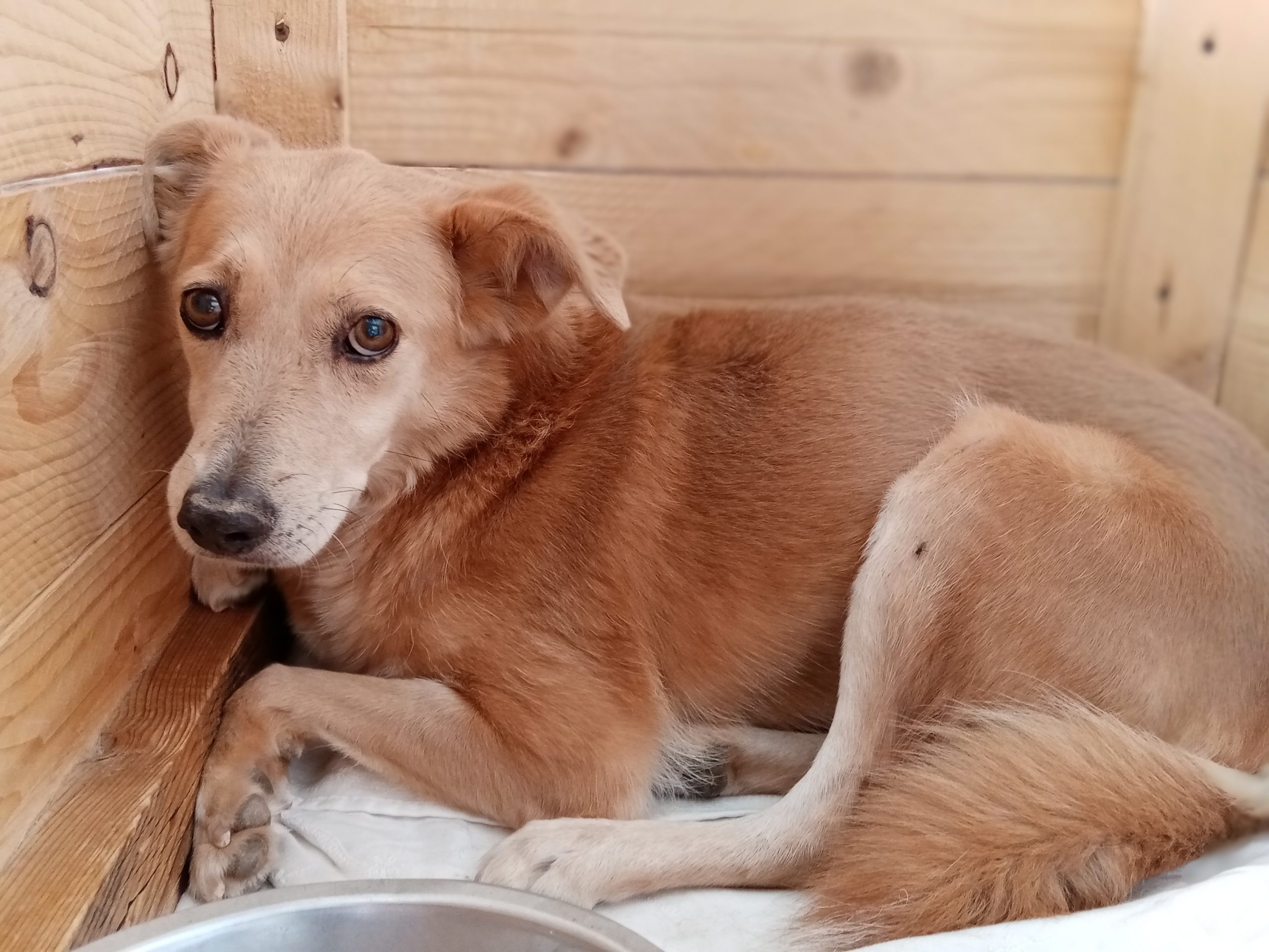 ADOTTABILE SOLO A DISTANZA.Pesca é una cagnetta di taglia media sterilizzata, pesa circa 17 kg, e arriva dal Comune di Riola, vicino ad Oristano. Non conosciamo la sua storia. E’ arrivata senza nome e quello attuale lo abbiamo scelto noi. Pesca è nata il 30/03/2011. E’ molto timida. A lei bisogna avvicinarsi con molta pazienza e senza movimenti bruschi che la spaventano. Mangia solo quando ci si allontana dal suo box. Pesca verrà affidata previ controlli e firma modulo di pre-adozione, da compilare sul nostro sito, a persone che avranno tanta pazienza e sapranno comprendere la sua timidezza, che la tengano in casa i primi periodi perché lei al momento tenta la fuga se provi ad avvicinarti senza seguire le regole suindicate.