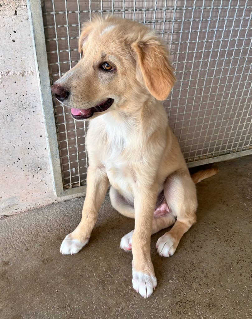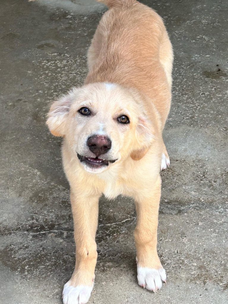 Rudy, è un cucciolo ritrovato insieme alla sorellina, ad inizio luglio 2025, all’interno di una scatola nel parcheggio di un supermercato.